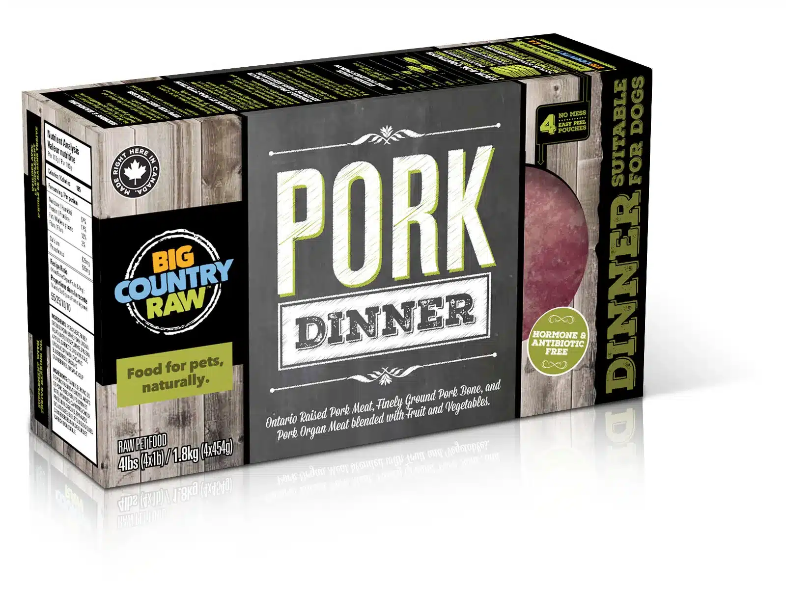 La formule pur de porc Big Country Raw est un excellent choix pour les propriétaires d’animaux à la recherche de protéines alternatives pour les chiens souffrant d’allergies. Considéré comme hypoallergénique, le porc est une protéine fortement recommandée par les vétérinaires et les nutritionnistes. Le porc est un choix éprouvé pour les chiens athlètes et de travail, car le porc construit et répare les muscles plus rapidement que toute autre protéine. Le porc est également une riche source de zinc, de vitamine B12, de fer et de sélénium. Mélangé à notre formule de fruits et de légumes biologiques, ce choix de repas offre de nombreuses raisons de le donner régulièrement à votre chien.