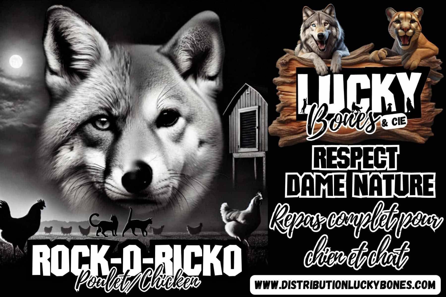Poulet de grain local, abats de poulet, feves jaune /verte, poivrons, épinards, carottes, framboises, bananes, céleris, brocolis, chou-fleurs, pommes, poires, bleuets, mures, fraises, concombres, huile de noix de coco,fines herbes fraiches: persil, curcuma, thym, menthe, sauge, basilic, aneth, supplements, vitamines et mineraux ajoutées